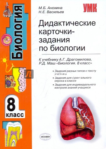 Дидактические карточки-задания являются дополнением к учебному комплекту по биологии для 8 класса и предназначены для самостоятельной работы учащихся. Они помогут учителю быстро определить уровень знаний школьников. Особенно эффективно их использование во время фронтальных опросов.