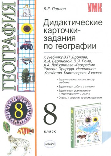 Дидактические карточки-задания составлены в соответствии с программой для общеобразовательных учебных заведений и адресованы учителям, работающим по учебнику "География России. Природа, население и хозяйство. 8 класс" под редакцией В.П. Дронова.