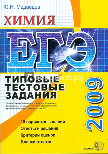 Типовые тестовые задания по химии содержат 10 вариантов комплектов заданий, составленных с учетом всех особенностей и требований Единого государственного экзамена в 2009 году. Назначение пособия - предоставить читателям информацию о структуре и содержании КИМ 2009 г. по химии, степени трудности заданий.