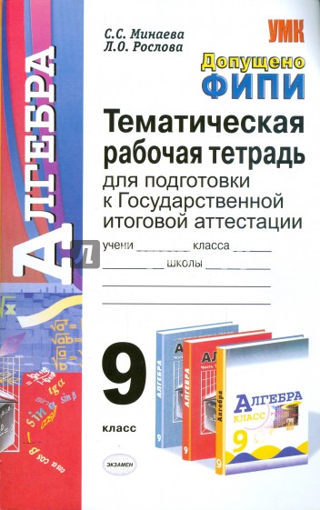 Тематическая рабочая тетрадь предназначена для подготовки учащихся к Государственной итоговой аттестации (в новой форме). Предлагаются задания с печатной основой для работы непосредственно на содержащихся в пособии заготовках. Последовательно выполняя предложенные авторами тематические тренировочные задания, учащиеся повторят основные вопросы курса алгебры 7-9 классов.