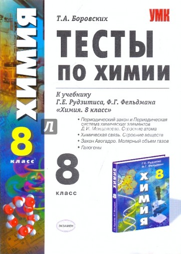 Пособие включает тестовые задания для текущего и итогового контроля, охватывающие четыре темы учебника Г.Е. Рудзитиса, Ф.Г. Фельдмана "Химия. 8 класс" от Периодического закона и периодической системы химических элементов Д.И. Менделеева и строение атома до галогенов. Тесты по четырем темам, которые изучают в начале курса химии 8 класса можно найти в другой книге с таким же названием автора Т.А. Боровских, изданной издательством "Экзамен".Тесты могут быть использованы как для фронтального, так и для индивидуального опроса. Тесты составлены в формате государственной итоговой аттестации (в новой форме).Каждый тест состоит из двух частей. В первой части содержатся вопросы с единичным выбором ответа, во второй Д вопросы с множественным выбором ответа, на установление соответствия, распределение на группы и вопросы, требующие открытого ответа. Автор пособия - к.п.н., доцент МПГУ, школьный учитель, написавший несколько учебно-методических книг по химии. Книга адресована учителю, но наличие ключей позволяет использовать ее школьникам для самопроверки степени усвоения знаний по каждой теме и подготовки к контрольным работам и зачетам.