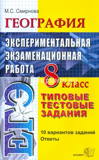 Пособие содержит 10 вариантов типовых тестовых заданий экспериментальной экзаменационной работы. Назначение пособия - отработка практических навыков учащихся по подготовке к экспериментальной экзаменационной работе в 8 классе по географии. В сборнике даны ответы на все варианты тестов. Приведена подробная инструкция по проверке и оценке работ учащихся. Пособие предназначено для учащихся 8 классов основной школы, учителей и методистов, использующих тесты для подготовки к экспериментальной экзаменационной работе.