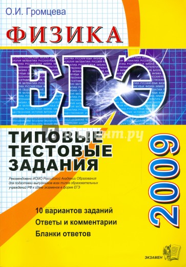 Типовые тестовые задания по физике содержат 10 вариантов комплектов заданий, составленных с учетом всех особенностей и требований Единого государственного экзамена в 2009 году. Назначение пособия Г предоставить читателям информацию о структуре и содержании контрольных измерительных материалов 2009 г. по физике, степени трудности заданий. В сборнике даны ответы на все варианты тестов и приводятся решения всех заданий одного из вариантов. Кроме того, приведены образцы бланков, используемых на ЕГЭ для записи ответов и решений. Пособие предназначено учителям для подготовки учащихся к экзамену по физике (не только к единому, но и к традиционному письменному), а учащимся-старшеклассникам и абитуриентам Г для самоподготовки и самоконтроля.