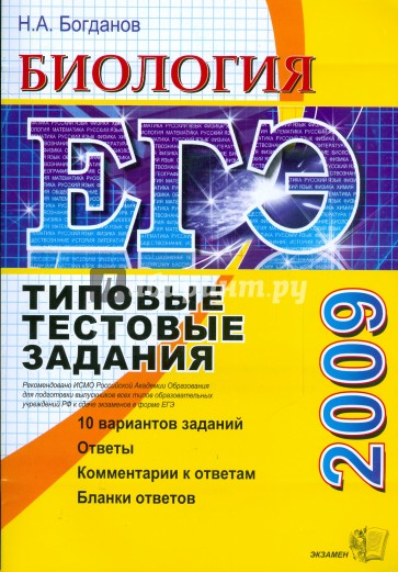 Типовые тестовые задания по биологии содержат 10 вариантов комплектов заданий, составленных с учетом всех особенностей и требований Единого государственного экзамена в 2009 году. Назначение пособия - предоставить читателям информацию о структуре и содержании контрольных измерительных материалов 2009 г. по биологии, степени трудности заданий.