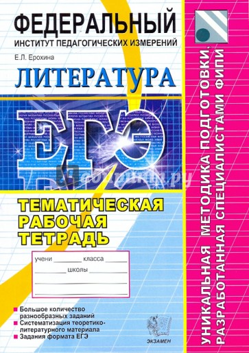 Тематическая рабочая тетрадь по литературе, созданная специалистами Федерального института педагогических измерений, ориентирована на подготовку учащихся средней школы к успешной сдаче ЕГЭ.