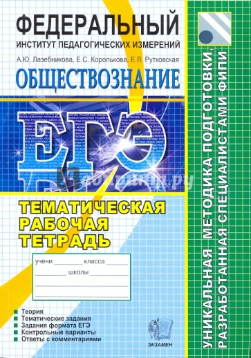 Тематическая рабочая тетрадь по обществознанию, созданная специалистами Федерального института педагогических измерений, ориентирована на подготовку учащихся средней школы к успешной сдаче ЕГЭ.