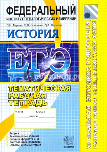 Тематическая рабочая тетрадь по истории, созданная специалистами Федерального института педагогических измерений, ориентирована на подготовку учащихся средней школы к успешной сдаче ЕГЭ.