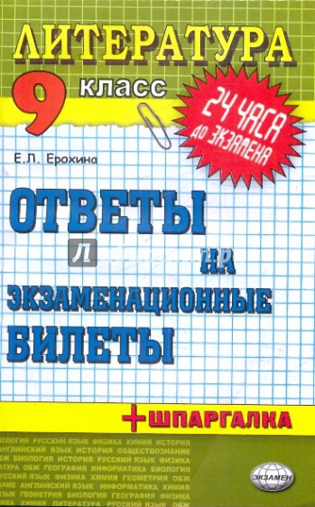 В пособии приводятся ответы на все вопросы экзаменационных билетов по литературе, предлагаемых Министерством образования и науки РФ для проведения устной итоговой аттестации выпускников 9 классов общеобразовательных школ. Предлагаемые ответы полностью соответствуют требованиям, предъявляемым на экзаменах в школах, и помогут школьникам эффективно систематизировать и укрепить свои знания. В пособии содержатся шпаргалки к билетам. Для простого и эффективного использования шпаргалки разрежьте каждую страницу на четыре части по пунктирной линии. Сложите полученные листы по порядку номеров - верхний левый, верхний правый, нижний левый, нижний правый. Для удобства использования можно скрепить получившуюся стопку степлером или скрепкой в верхнем левом углу.