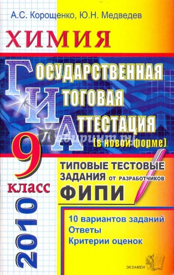 Назначение пособия - отработка практических навыков учащихся по подготовке к экзамену (в новой форме) в 9 классе по химии в 2010 году.