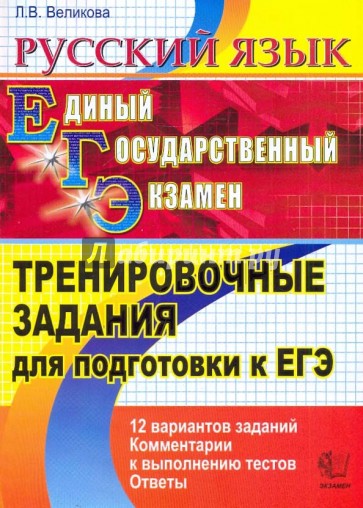 В учебном пособии содержатся тренировочные задания по русскому языку в форме ЕГЭ, сгруппированные по темам в порядке их изучения в 10-11-х классах старшей школы. Приводятся задания частей А, В и С, три обобщающих варианта экзаменационной работы. Ко всем заданиям приводятся ответы.