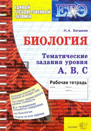 Тематическая рабочая тетрадь по биологии ориентирована на подготовку учащихся средней школы для успешной сдачи единого государственного экзамена.