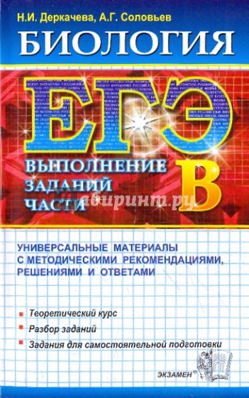 Пособие предназначено для подготовки к экзамену по биологии в форме ЕГЭ. Оно содержит теоретический материал для подготовки, примеры заданий части В Единого государственного экзамена по биологии с подробным разбором, а также задания для самостоятельного решения, аналогичные тем, которые встречаются на экзамене. На все задания даны ответы.