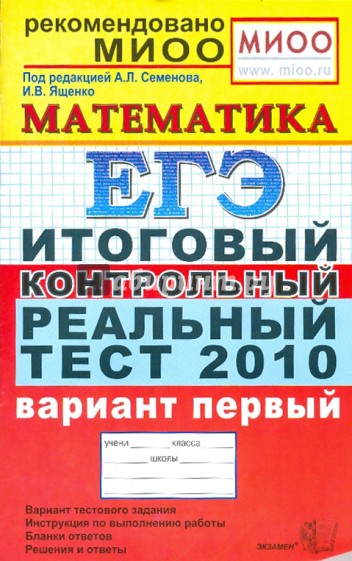 Итоговый контрольный реальный тест позволит учащимся ознакомиться с содержанием контрольных измерительных материалов (КИМ) 2010 года, формой заполнения бланков Единого государственного экзамена, а также почувствовать себя на ЕГЭ.