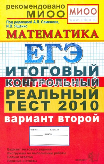 Итоговый контрольный реальный тест позволит учащимся ознакомиться с содержанием контрольных измерительных материалов (КИМ) 2010 года, формой заполнения бланков Единого государственного экзамена, а также почувствовать себя на ЕГЭ.
