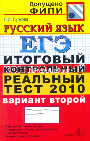 Итоговый контрольный реальный тест позволит учащимся ознакомиться с содержанием контрольных измерительных материалов (КИМ) 2010 года, формой заполнения бланков Единого государственного экзамена, а также почувствовать себя на ЕГЭ.