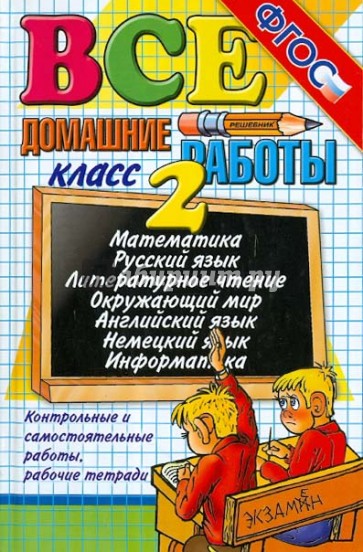 В данном учебном пособии решены и в большинстве случаев подробно разобраны задачи и упражнения по РУССКОМУ ЯЗЫКУ, МАТЕМАТИКЕ, ЛИТЕРАТУРНОМУ ЧТЕНИЮ, ОКРУЖАЮЩЕМУ МИРУ, ИНФОРМАТИКЕ, НЕМЕЦКОМУ и АНГЛИЙСКОМУ ЯЗЫКАМ из ВСЕХ основных учебников начальной школы для 2 класса.