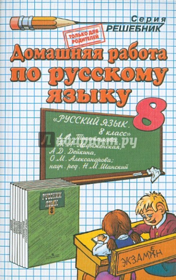 В пособии выполнены и в большинстве случаев подробно разобраны задания и упражнения из учебника "Русский язык. 8 класс: учебник для общеобразовательных учреждений / [Л.А. Тростенцова, Т.А. Ладыженская, А.Д. Дейкина, О.М. Александрова; науч. ред. Н.М. Шанский]. - 9-е изд. - М.: Просвещение, 2012".