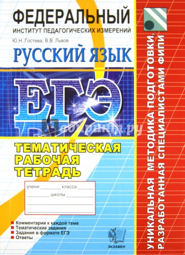 Тематическая рабочая тетрадь по русскому языку, созданная специалистами Федерального института педагогических измерений, ориентирована на подготовку учащихся средней школы к успешной сдаче ЕГЭ.