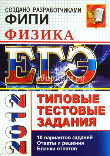 Типовые тестовые задания по физике содержат 10 вариантов комплектов заданий, составленных с учетом всех особенностей и требований Единого государственного экзамена в 2012 году. Назначение пособия - предоставить читателям информацию о структуре и содержании контрольных измерительных материалов 2012 г. по физике, а также о степени трудности заданий. В сборнике даны ответы на все варианты тестов, приводятся решения всех заданий одного из вариантов, а также решения наиболее сложных задач уровня С во всех 10 вариантах. Кроме того, приведены образцы бланков, используемых на ЕГЭ. В состав авторского коллектива входят специалисты, имеющие большой опыт работы в школе и вузе и принимающие участие в разработке тестовых заданий для ЕГЭ. Пособие адресовано учителям для подготовки учащихся к экзамену по физике, а учащимся-старшеклассникам и абитуриентам - для самоподготовки и самоконтроля.