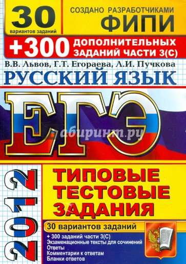 Пособие содержит 30 вариантов типовых тестовых заданий по русскому языку, а также тексты и задания, направленные на отработку навыков написания сочинения (часть 3(C). Все задания составлены с учетом особенностей и требований Единого государственного экзамена в 2012 году.