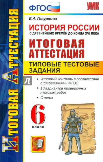 Пособие предназначено для подготовки и проведения итоговой аттестации в 6 классе по курсу истории России с древнейших времен до конца XVI века. 10 вариантов проверочных итоговых работ позволят проверить знания и умения шестиклассников по истории и соотнести их с требованиями нового федерального государственного образовательного стандарта для основной школы. Задания могут использоваться при работе с любым учебником истории России для 6 класса Федерального перечня.