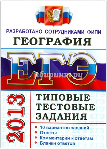 Типовые тестовые задания по географии содержат 10 вариантов комплектов заданий, составленных с учетом всех особенностей и требований Единого государственного экзамена в 2013 году. Назначение пособия - предоставить читателям информацию о структуре и содержании КИМ 2013 г. по географии, степени трудности заданий.