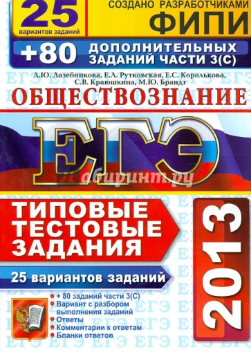 Пособие содержит 25 вариантов типовых тестовых заданий по обществознанию, а также 80 дополнительных заданий части 3(C). Все задания составлены с учетом особенностей и требований Единого государственного экзамена в 2013 году.