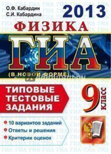 ГИА 2013. ФИЗИКА. 9 КЛАСС. ГОСУДАРСТВЕННАЯ ИТОГОВАЯ АТТЕСТАЦИЯ (В НОВОЙ ФОРМЕ). ТИПОВЫЕ ТЕСТОВЫЕ ЗАДАНИЯ. 10 вариантов заданий. Ответы и решения. Критерии оценок. Рекомендовано РАО