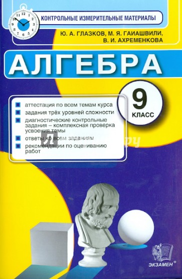 Сборник содержит 14 тестов (в том числе итоговый в формате ГИА) и 6 контрольных работ для текущего и тематического контроля по курсу алгебры 9 класса. В сборнике приведены также ответы к заданиям, рекомендации по подсчету баллов и выставлению отметок.