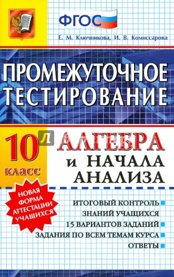Пособие включает 15 вариантов заданий для проведения контроля знаний учащихся в конце учебного года и дает учителю возможность быстро провести диагностику усвоения школьниками материала 10 класса.