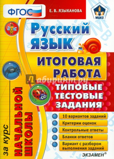 Книга содержит 10 вариантов типовых тестовых заданий итоговой работы за курс начальной школы.