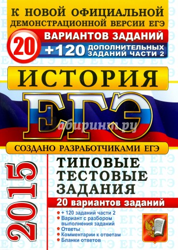 Пособие содержит 20 вариантов типовых тестовых заданий по истории, а также 120 дополнительна заданий части 2. Все задания составлены с учетом особенностей и требований Единого государственно экзамена в 2015 году.