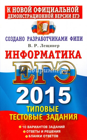 Типовые тестовые задания по информатике содержат 10 вариантов комплектов заданий, составленных с учетом всех особенностей и требований Единого государственного экзамена в 2015 году. Назначение пособия - предоставить читателям информацию о структуре и содержании КИМ 2015 г. по информатике, степени трудности заданий.