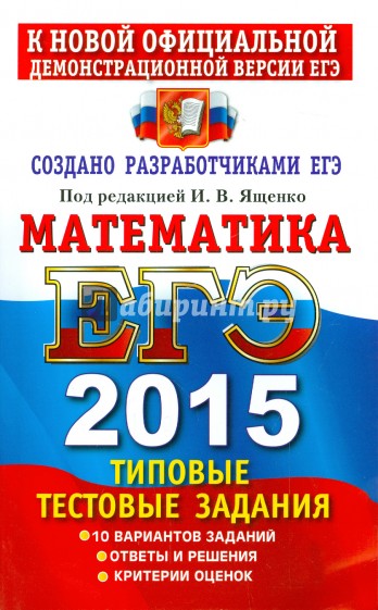 Типовые тестовые задания по математике содержат 10 вариантов комплектов заданий, составленных с учетом всех особенностей и требований Единого государственного экзамена в 2015 году. Назначение пособия - предоставить читателям информацию о структуре и содержании контрольных измерительных материалов 2015 г. по математике, степени трудности заданий.