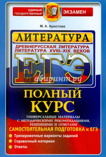 Единый государственный экзамен по литературе - один из самых сложных. Предлагаемое пособие поможет качественно подготовиться к предстоящему испытанию. Издание содержит большой справочный материал по древнерусской литературе и литературе XVIII-XIX веков, а также тренировочные варианты заданий в формате ЕГЭ по литературе.