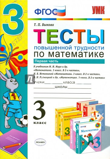 Тесты повышенной трудности по математике к учебникам: М. И. Моро и др. "Математика. 3 класс. В 2-х частях", Н. Б. Истоминой "Математика. 3 класс. В 2-х частях", В. Н. Рудницкой и др. "Математика. 3 класс. В 2-х частях".