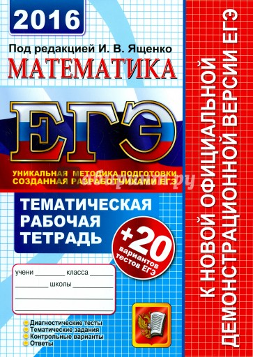 Тематическая рабочая тетрадь по математике предназначена для подготовки к Единому государственному экзамену, организации и проведения итогового повторения, диагностики проблемных зон в знаниях старшеклассников и последующей коррекции.