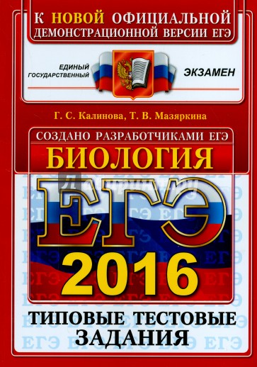 Типовые тестовые задания по биологии содержат 10 вариантов комплектов заданий, составленных с учетом всех особенностей и требований Единого государственного экзамена в 2016 году. Назначение пособия - предоставить читателям информацию о структуре и содержании контрольных измерительных материалов 2016 г. по биологии, их отличии от предшествующих лет, степени трудности заданий.