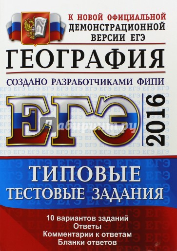 Типовые тестовые задания по географии содержат 10 вариантов комплектов заданий, составленных с учетом всех новейших изменений и требований Единого государственного экзамена в 2016 году. Назначение пособия - предоставить читателям информацию о структуре и содержании КИМ 2016 г. по географии, степени трудности заданий.