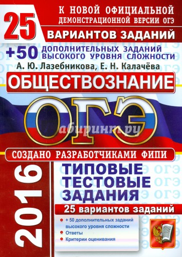 Пособие содержит 25 вариантов типовых тестовых заданий по обществознанию, а также дополнительные задания высокого уровня сложности. Все задания составлены с учетом особенностей и требований Основного государственного экзамена в 2016 году.