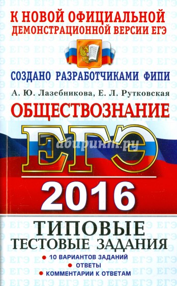 Типовые тестовые задания по обществознанию содержат 10 вариантов комплектов заданий, составленных с учетом всех особенностей и требований Единого государственного экзамена в 2016 году. Назначение пособия - предоставить читателям информацию о структуре и; содержании контрольных измерительных материалов 2016 г. по обществознанию, степени трудности заданий.