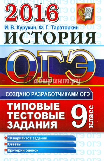 Пособие содержит 10 вариантов типовых тестовых заданий Основного государственного экзамена 2016 года.
