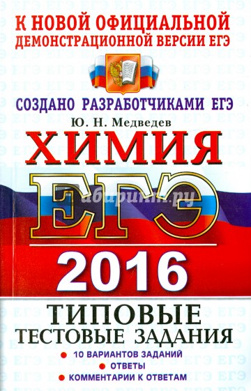 Типовые тестовые задания по химии содержат 10 вариантов комплектов заданий, составленных с учетом всех особенностей и требований Единого государственного экзамена в 2016 году. Назначение пособия - предоставить читателям информацию о структуре и содержании КИМ 2016 г. по химии, степени трудности заданий.