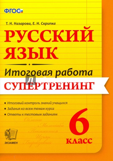 Пособие содержит 10 вариантов тестовых заданий для подготовки шестиклассников к итоговой работе по русскому языку.