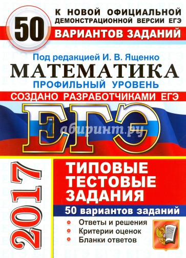 Книга содержит 50 вариантов комплектов типовых тестовых заданий по математике, составленных с учетом всех особенностей и требований Единого государственного экзамена по математике профильного уровня 2017 года.