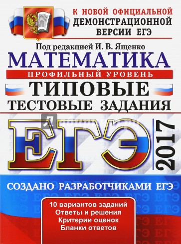 Типовые тестовые задания по математике содержат 10 вариантов комплектов заданий, составленных с учетом всех особенностей и требований ЕГЭ по математике профильного уровня в 2017 году. Назначение пособия - предоставить читателям информацию о структуре и содержании КИМ по математике, степени трудности заданий.