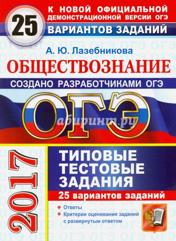 Пособие содержит 25 вариантов типовых тестовых заданий ОГЭ по обществознанию. Все задания составлены с учетом особенностей и требований Основного государственного экзамена в 2017 году.
