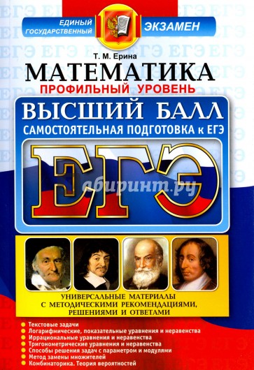 Предлагаемое пособие адресовано в первую очередь тем, кто хочет успешно подготовиться к Единому государственному экзамену (ЕГЭ) по математике профильного уровня и получить максимальный балл. Поскольку ЕГЭ - не только выпускной школьный экзамен, но и вузовский вступительный экзамен, который предусматривает проверку знаний по всему школьному курсу, в пособие включены задачи и краткие справочные материалы по важнейшим темам школьного курса математики. Особое внимание уделяется решению задач, в том числе решению задач повышенной сложности.