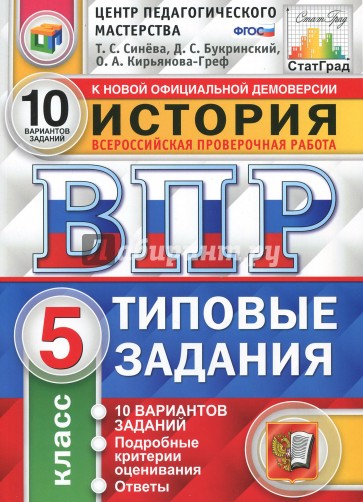 Данное пособие полностью соответствует федеральному государственному образовательному стандарту (второго поколения) и Историко-культурному стандарту. Книга содержит 10 вариантов типовых заданий Всероссийской проверочной работы (ВПР) по истории для учащихся 5-х классов. Сборник предназначен для обучающихся 5-х классов, учителей и методистов, использующих типовые задания для подготовки к Всероссийской проверочной работе по истории.