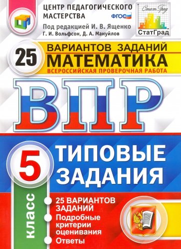 ВСЕРОССИЙСКАЯ ПРОВЕРОЧНАЯ РАБОТА. МАТЕМАТИКА. 5 КЛАСС. 25 ВАРИАНТОВ. ТИПОВЫЕ ЗАДАНИЯ. 25 вариантов заданий. Подробные критерии оценивания. Ответы. ФГОС.